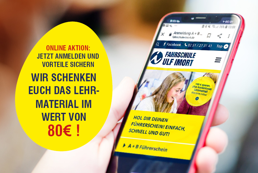 Ab sofort bekommt ihr bei einer Anmeldung für den Führerschein der Klasse B bis zum 30.04.2020 das Lehrmaterial im Wert von 80 € von uns geschenkt!